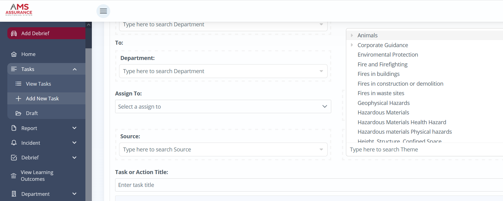 Theme Visibility is a feature within the Assurance Monitoring System (AMS) that allows administrators to control which themes are available for selection during task and debrief submission.
